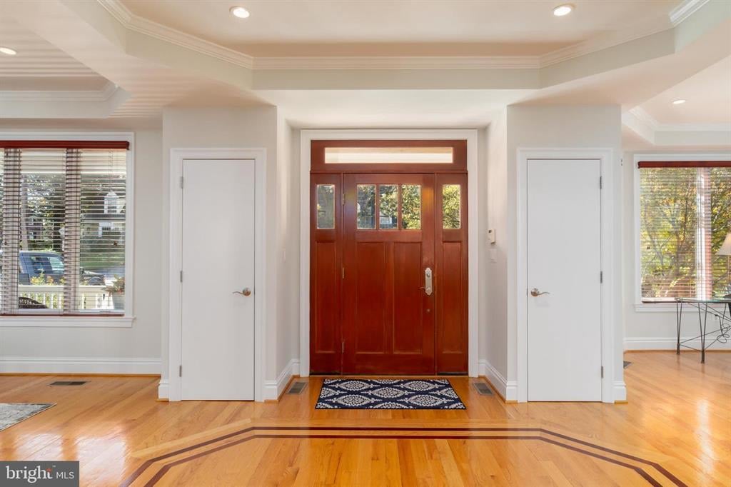THE HOUSE YOU HAVE BEEN WAITING FOR IN BETHESDA'S WONDERFUL WYNGATE NEIGHBORHOOD! Custom design, one-of-a-kind, 7,180 square feet of finished space (professionally measured - tax records do not reflect full SF - floorplans available). Freshly painted and updated - shows like new. A first-floor, open plan with stone front porch, backyard terrace (built-in gas hook-up and speakers), and a fully fenced-in yard make for outstanding outdoor and indoor entertaining. A 2nd floor balcony adds additional outdoor space overlooking the front yard. Inside, a beautiful central floating staircase provides the focal point for the main level with hardwood and travertine marble floors. The family room is spectacularly light filled with cathedral ceilings and Pella window wall overlooking the back yard. It is open to the breakfast, dining, kitchen, and formal living room with gas fireplace. An office, full bath with travertine marble shower, mud room/laundry room (with brand new LG washer and dryer), and a walk-in pantry complete this main level. The gourmet kitchen boasts Virginia Mist granite countertops, travertine marble floors, and cherry cabinets. A center island includes a second sink with garbage disposal. Stainless steel appliances include a six-burner Professional Thermador range, Bosch dishwasher, GE refrigerator/freezer, and microwave oven. A wet bar with wine fridge and granite countertop is located between the kitchen and formal dining areas. The 1st Upper Floor includes a sitting area that overlooks the family room below and has french doors leading out to the balcony. The primary master suite is oriented to the back of the house and has coffered ceilings, a gas fireplace, and new carpeting. The room includes sitting areas, a dressing area, and a master bath with granite double sinks, whirlpool tub, and travertine marble shower/steam sauna. The second bedroom is located on the front of the house with french doors leading out to the balcony. It also has new carpeting and a private bath. In between these two rooms lies a laundry closet with hook-ups for a stacked washer/dryer and a 2nd set of stairs leading down to the kitchen area. The 3rd bedroom is located on the front of the house with bay windows framed in farm-house wood, a walk-in closet, and hardwood floors. A 4th bedroom with hardwood floors is located on the back of the house and another full bath lies between these two bedrooms. The 2nd Upper Floor is all hardwood except for a newly carpeted 8'x36' playroom located off a 16'x21' sitting area that could also be used as a second office, classroom, or any number of functions. A full bathroom and a 5th bedroom with walk-in closet round out the finished area on this level. An unfinished attic/storage area with heat pump is also located on this floor. The Lower Level of the home is fully finished with tall ceilings and double glass doors with a wide stairwell accessing the back yard. There are five, full-sized windows with light-wells and the 6th bedroom incorporates two of these windows. The bedroom has new carpeting and one usable closet. A second closet in this room contains a full-house water filtration and treatment system that was added in 2016. The main area has ceramic tile throughout, and this expansive open space could incorporate any number of functions - including indoor roller skating! Or add your own touch with a media room and/or bar. An exercise room and full bath are also located on this level along with an unfinished storage room that houses the water heater and 2nd mechanical unit. The two-car garage has a newly painted epoxy floor. This amazing, custom-built home is one of a kind and is ready for immediate occupancy. Wyngate is a super convenient location and the neighborhood boasts its own Citizens Association with very active Listserv group ($20/year dues). It actively connects neighbors to each other for sharing of resources/recommendations, organizing holiday celebrations, etc.